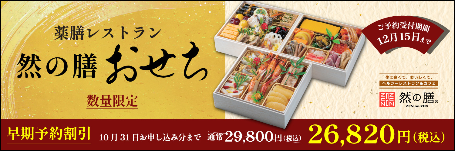 然の膳では、令和八年のお正月用に、今年初めて「おせち」を販売させていただきます。