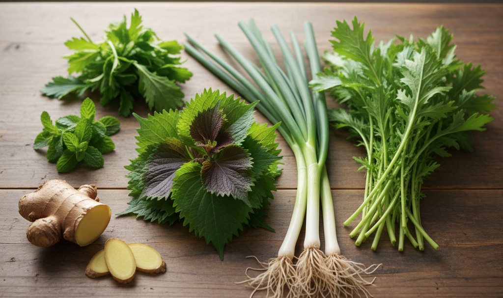 しそ、ネギ、生姜、ミント、春菊