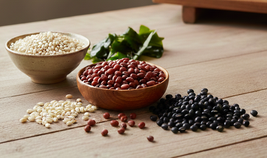 はと麦、小豆、黒豆、海藻類